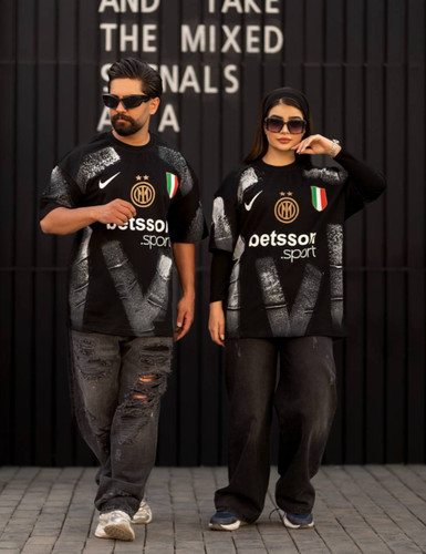تیشرت مردانه اینترمیلان آستین کوتاه اورجینال طرح هواداری اینتر oversize جنس سنگشور رنگ آبی سفید مشکی سایز L XL 2XLکامل