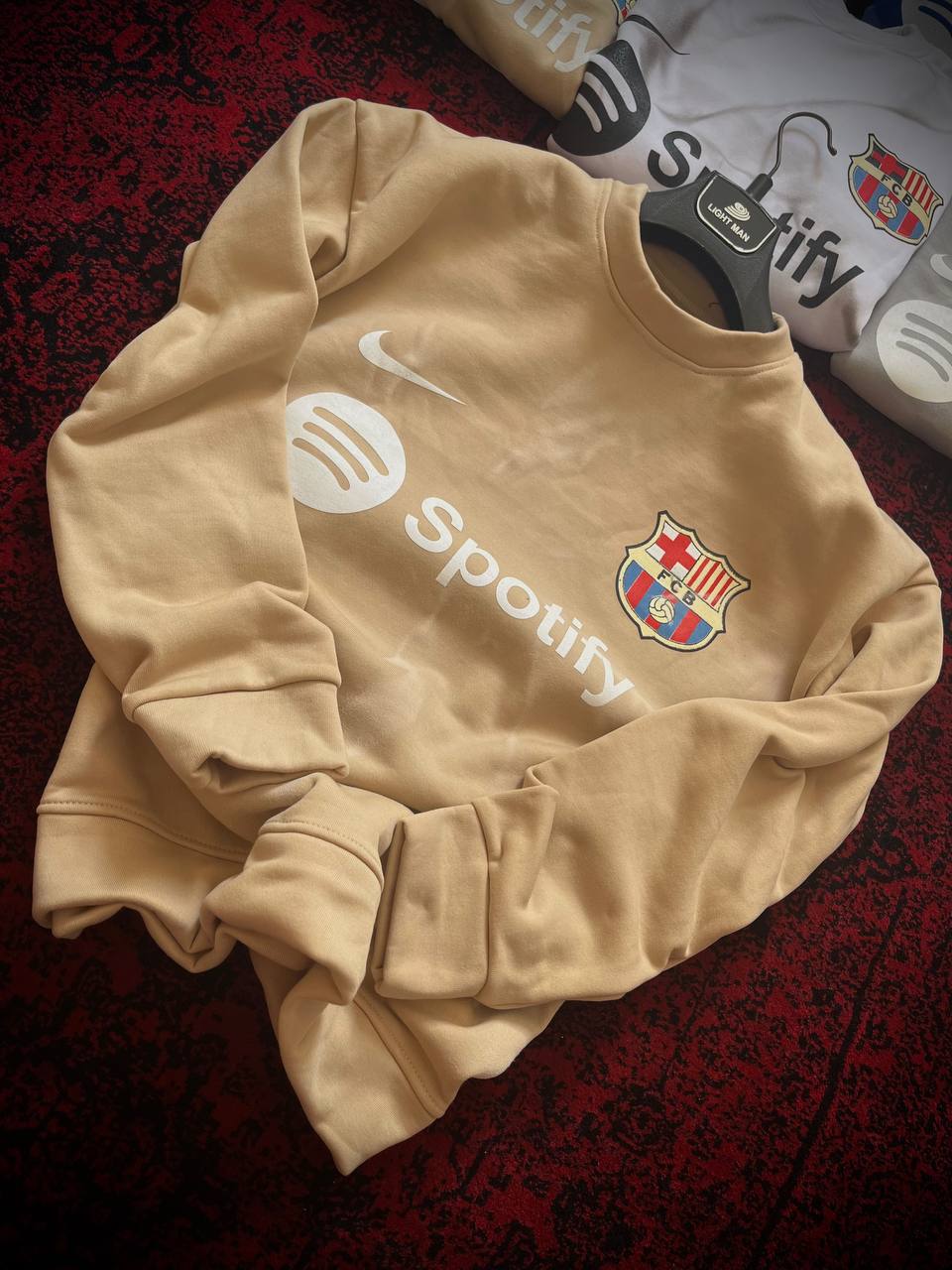 دورس مردانه بارسلونا طرح اسپاتیفای رنگ طوسی، کرم، مشکی، سفید و آبی کاربنی | سایز 3XL و 4XL قواره باکسی پارچه پنبه خارخورده