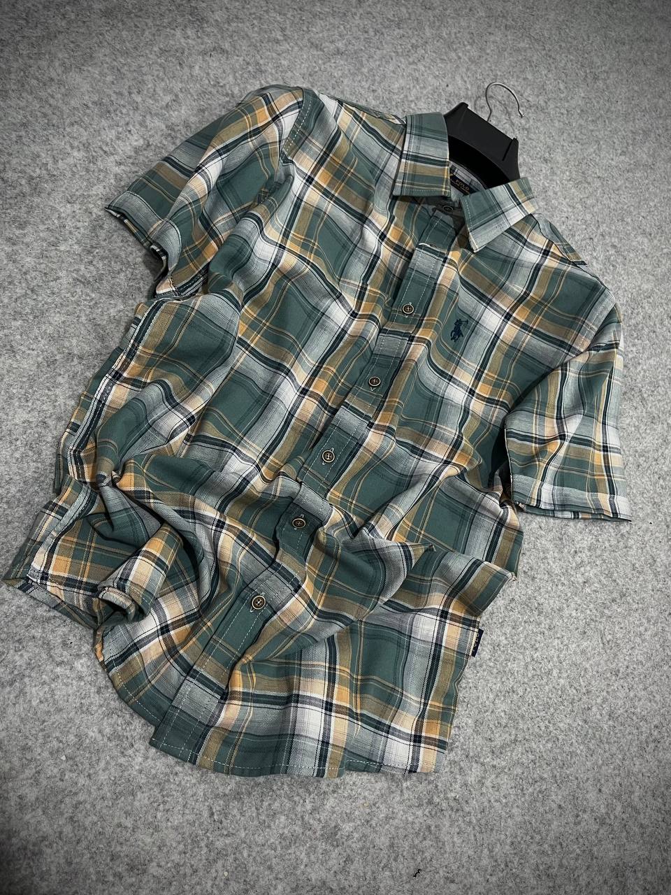 پیراهن مردانه چهارخانه نخ پنبهای آستین کوتاه مدل کلاسیک POLO