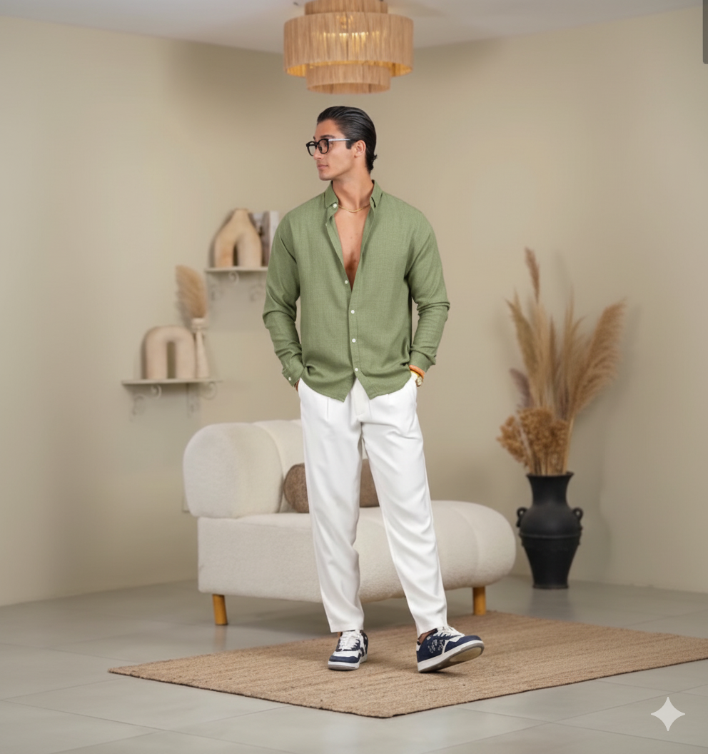 پیراهن مردانه پنبه لینن ترک نخ گرد بافت کنفی