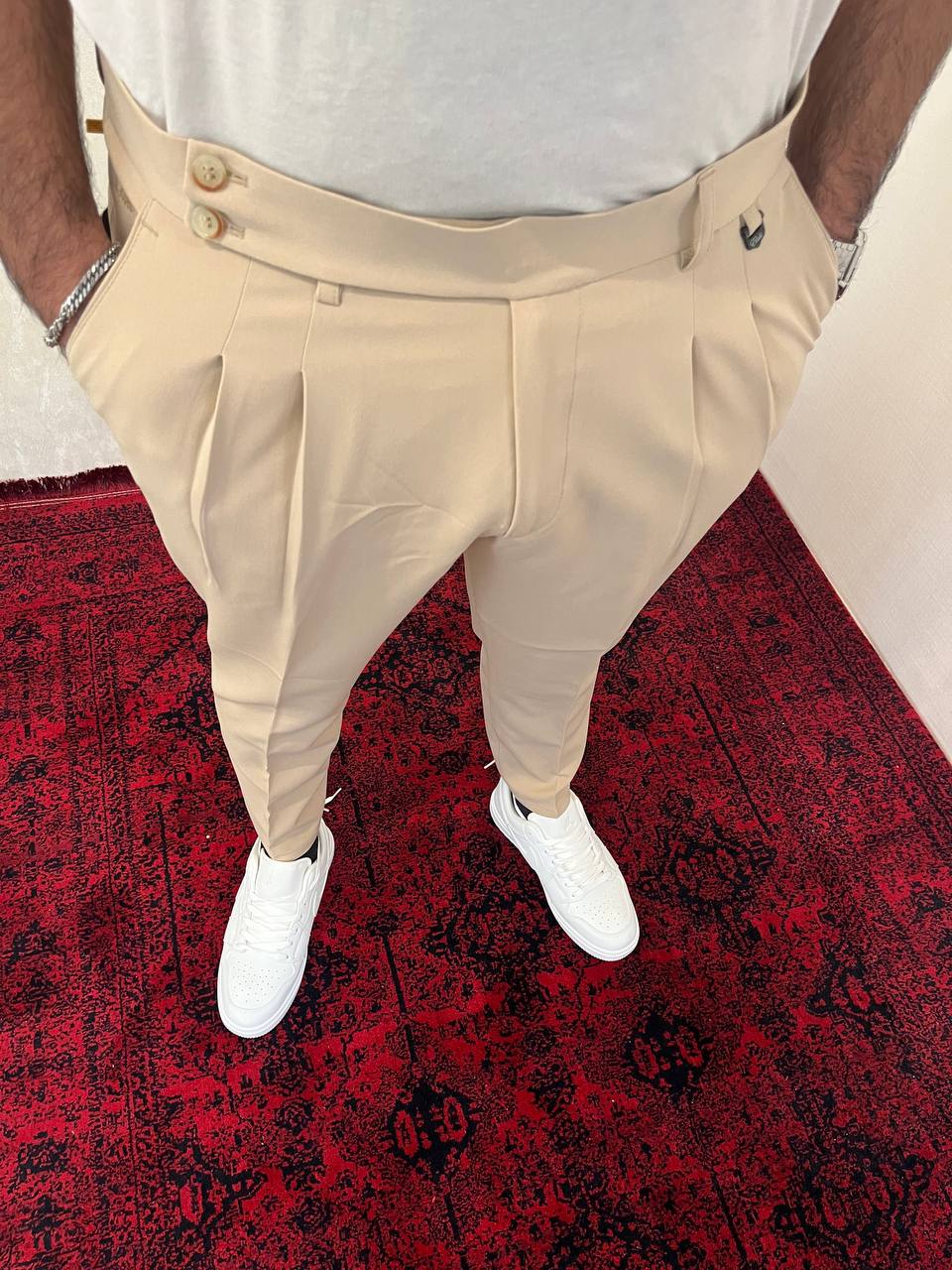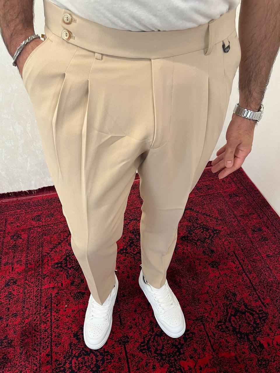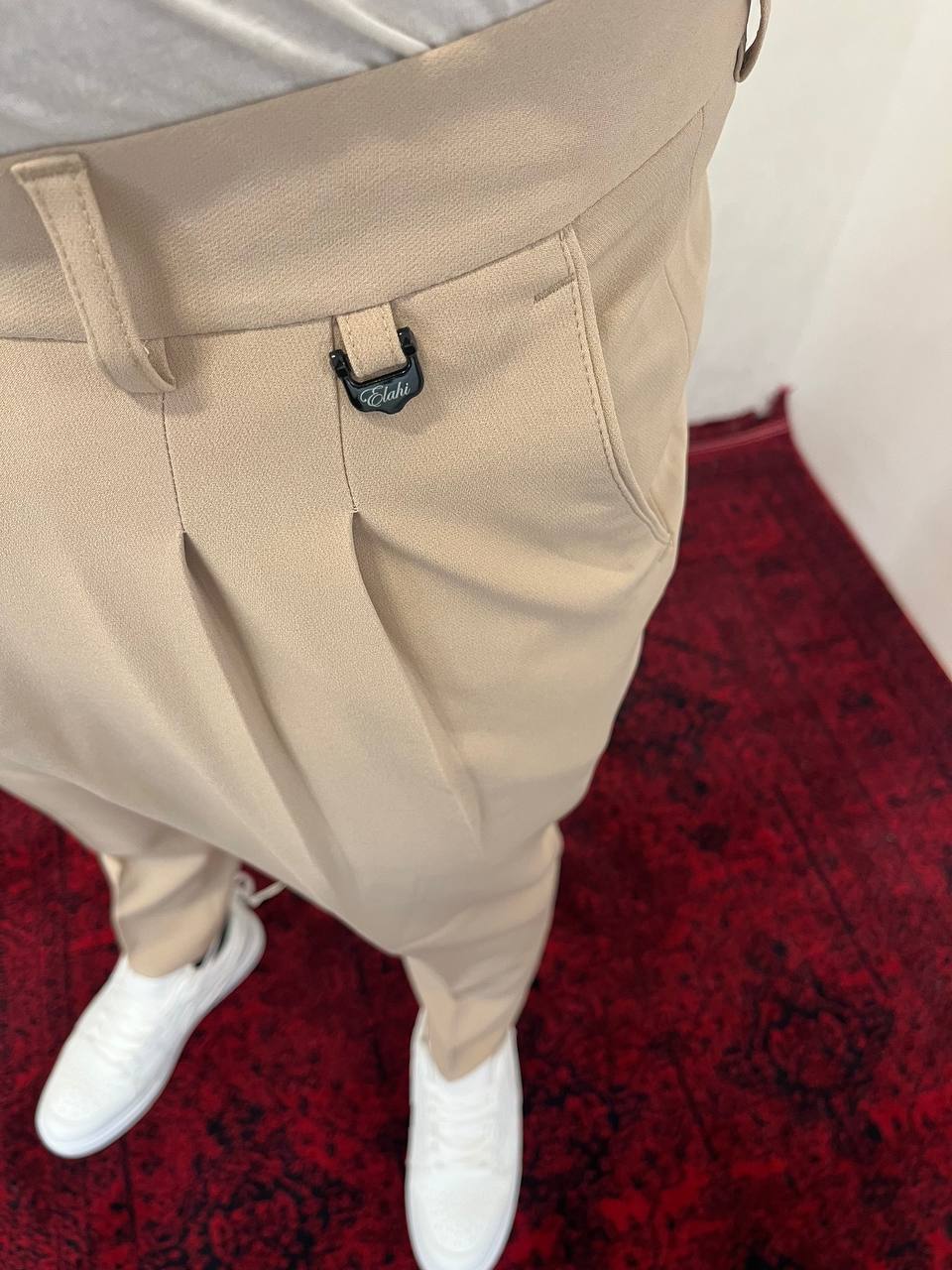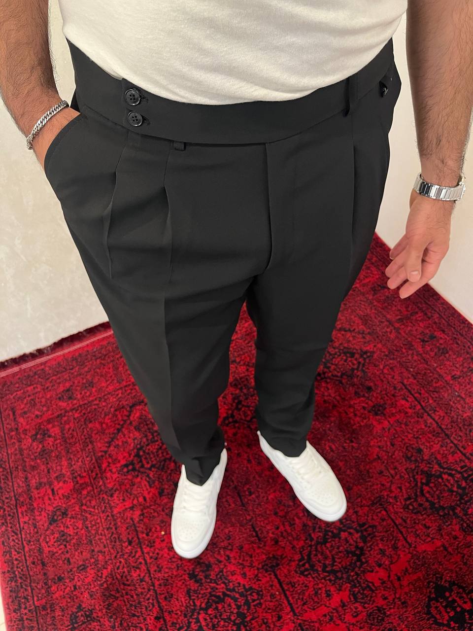 این شلوار با طراحی کمر ایتالیایی و دو دکمه کناری، ظاهری خاص و مجلسی دارد.