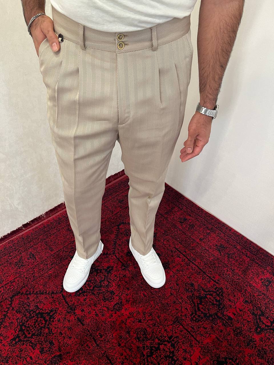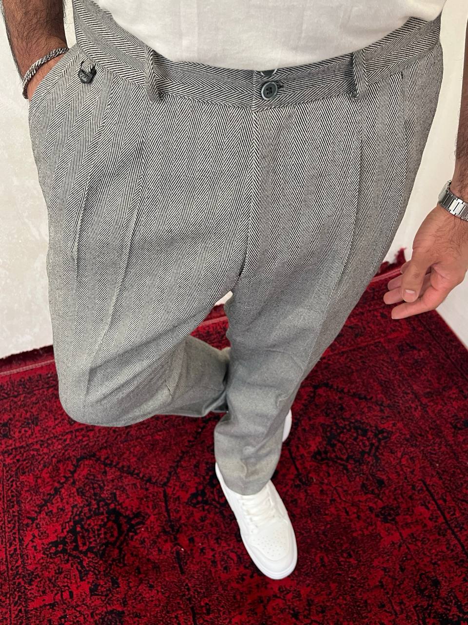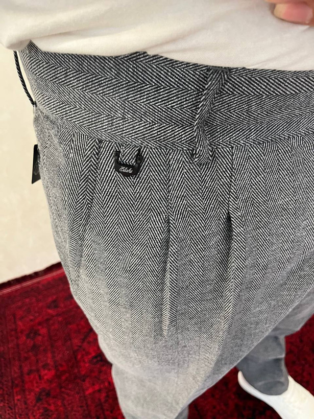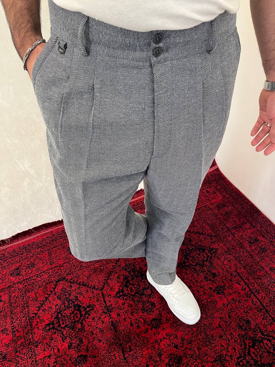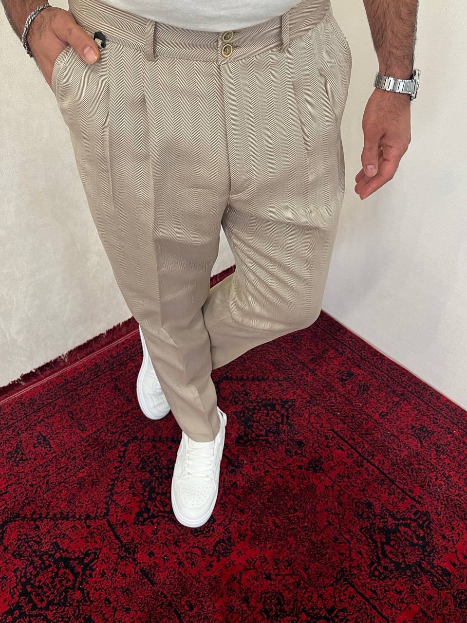 شلوار مام‌فیت مردانه نسکافه‌ای جنس هیرینگ‌بون، مناسب استایل نیمه‌رسمی، سایزبندی کامل  نقره‌ای