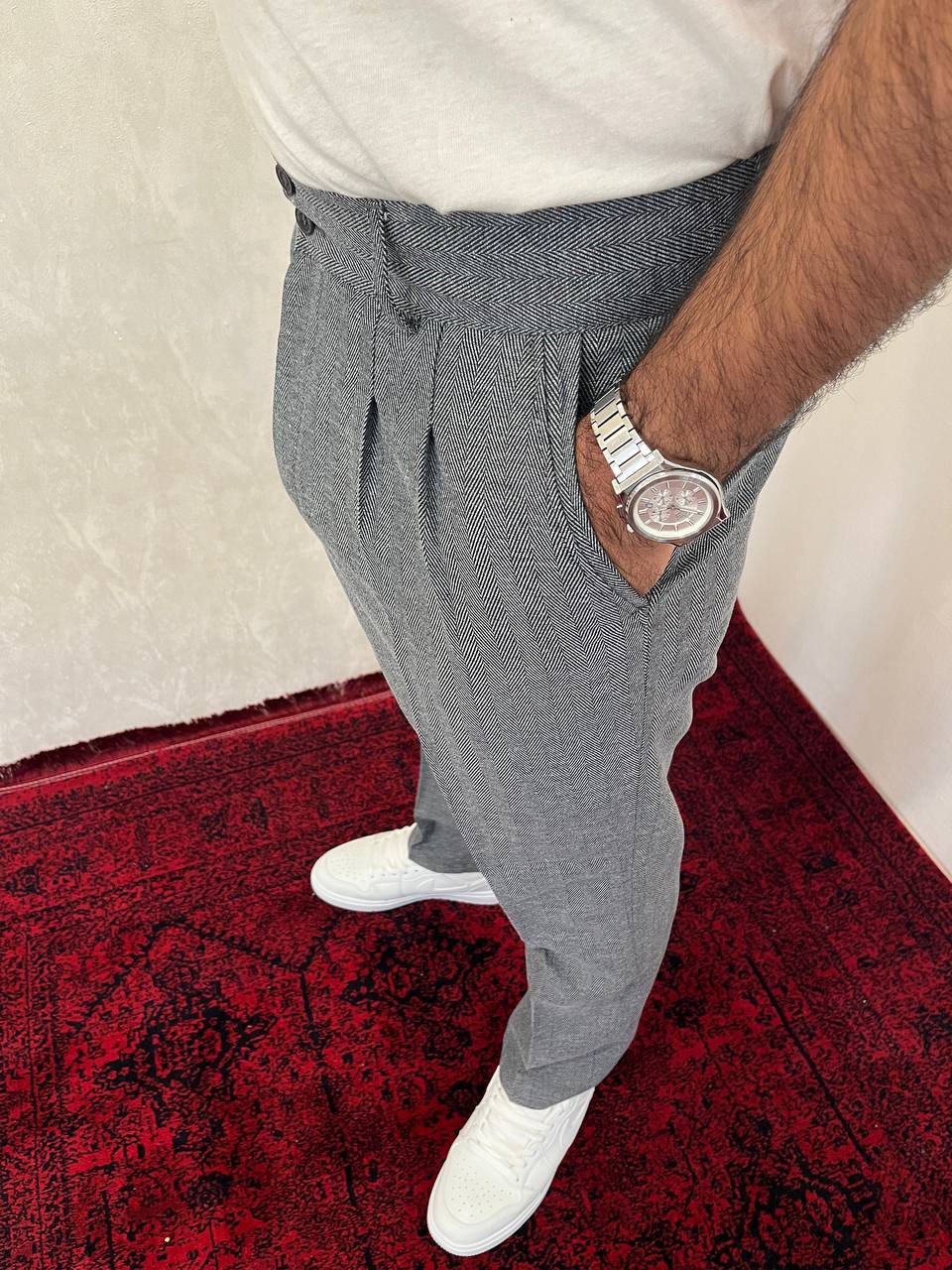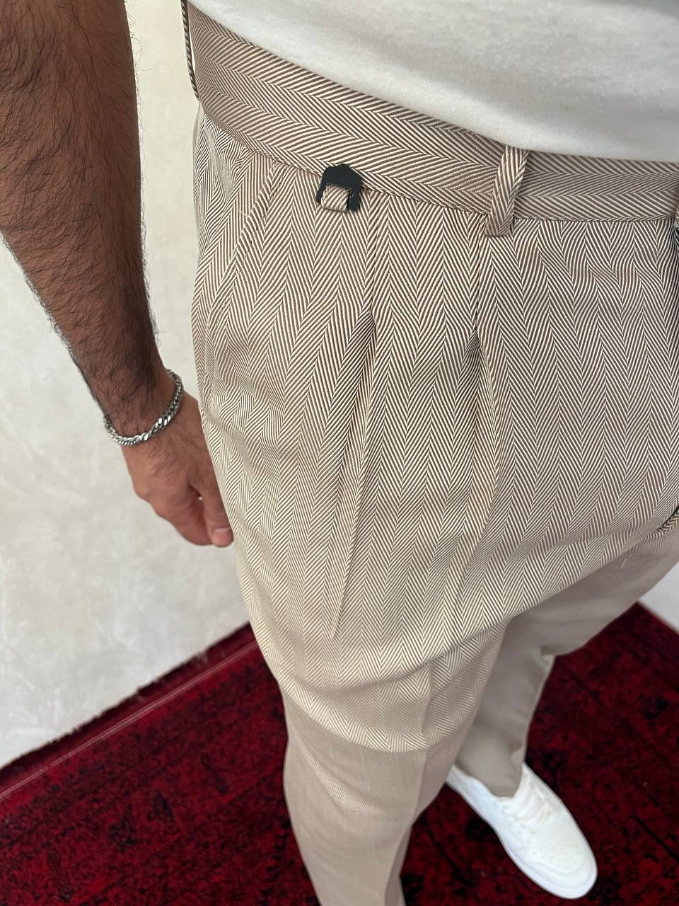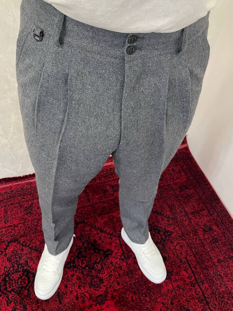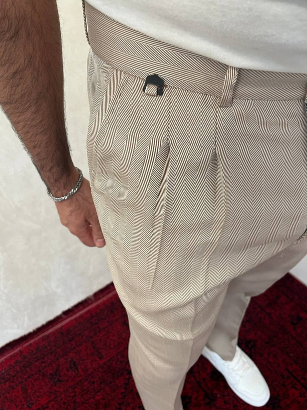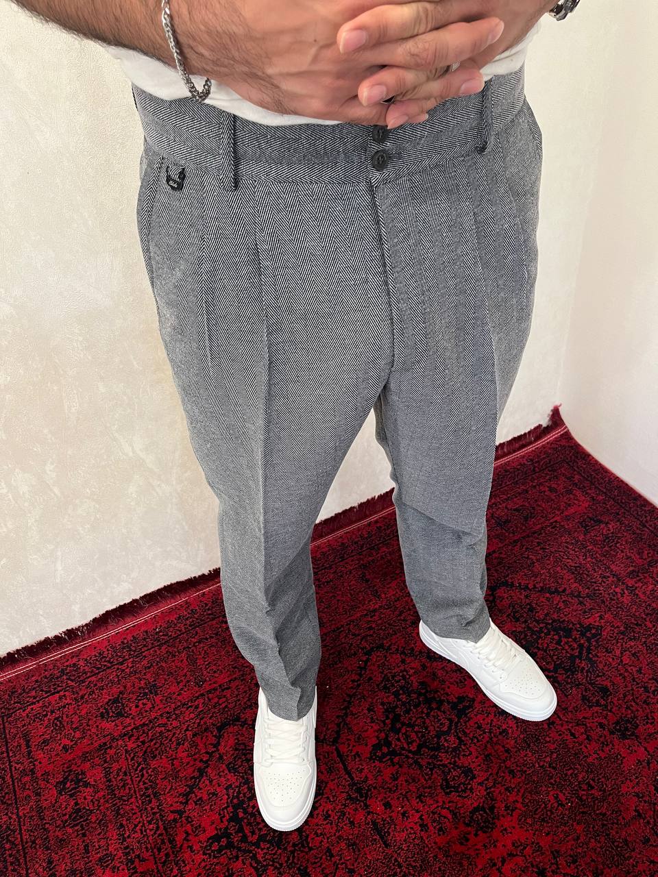 شلوار مام‌فیت مردانه نسکافه‌ای جنس هیرینگ‌بون، مناسب استایل نیمه‌رسمی، سایزبندی کامل  نقره‌ای