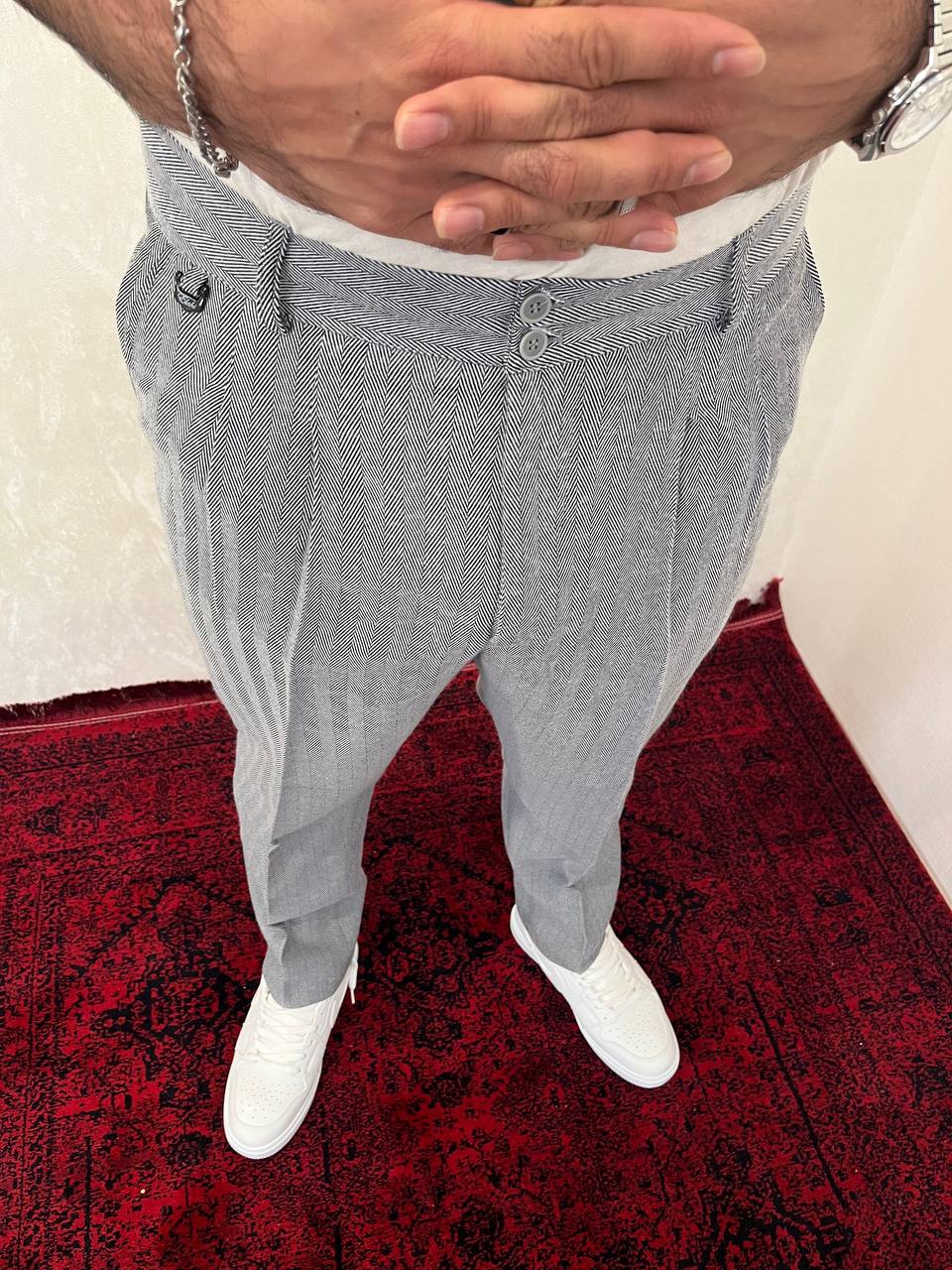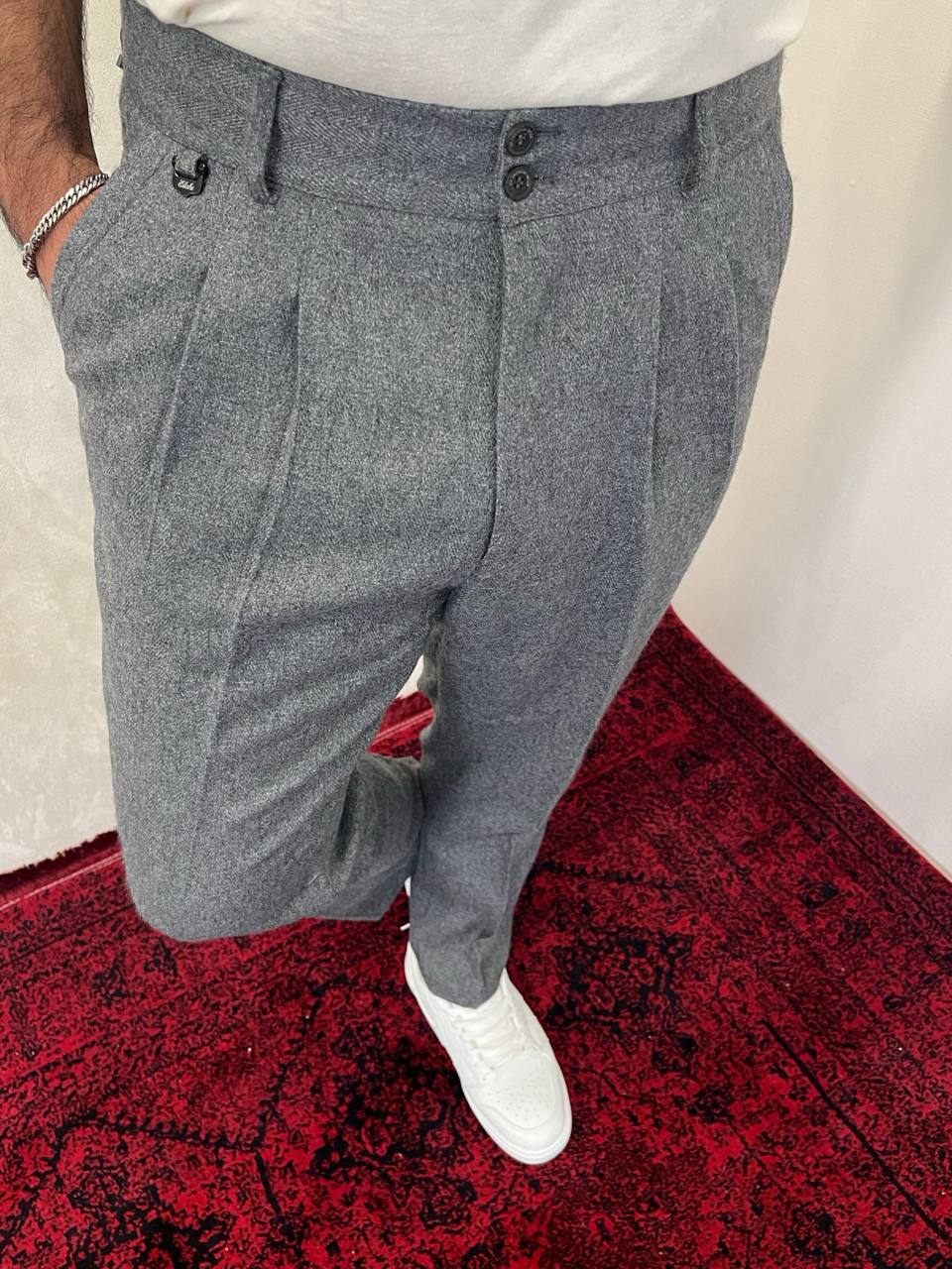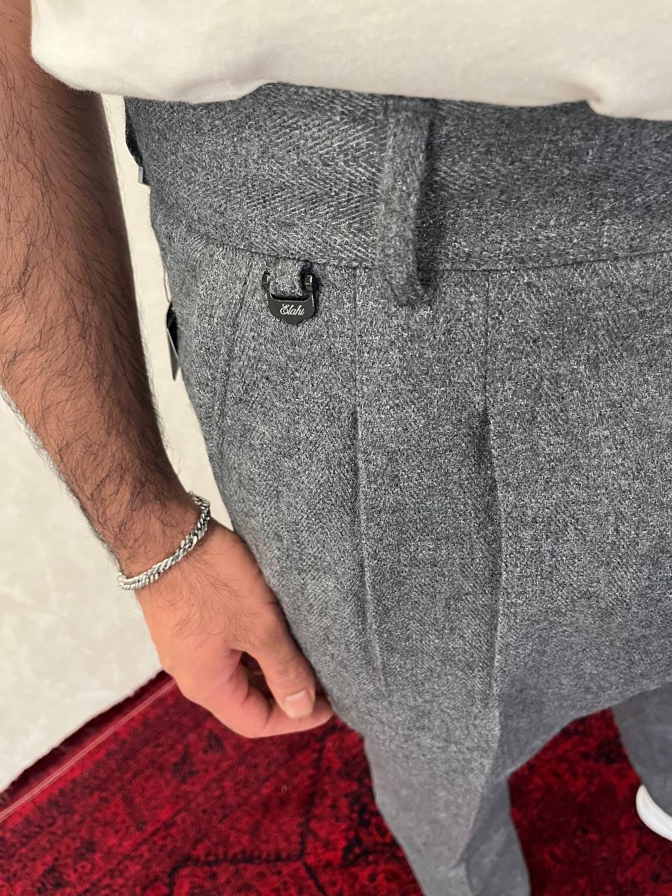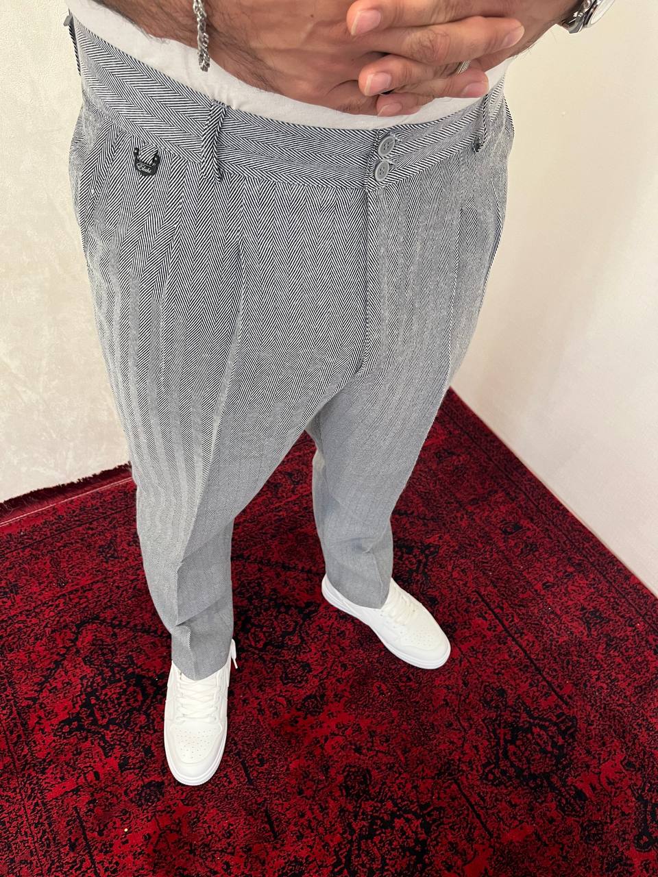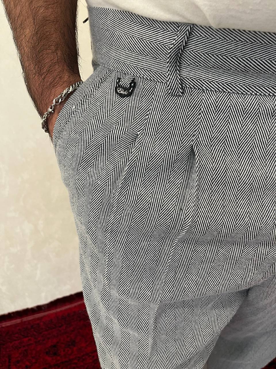 شلوار مام‌فیت مردانه نسکافه‌ای جنس هیرینگ‌بون، مناسب استایل نیمه‌رسمی، سایزبندی کامل  نقره‌ای