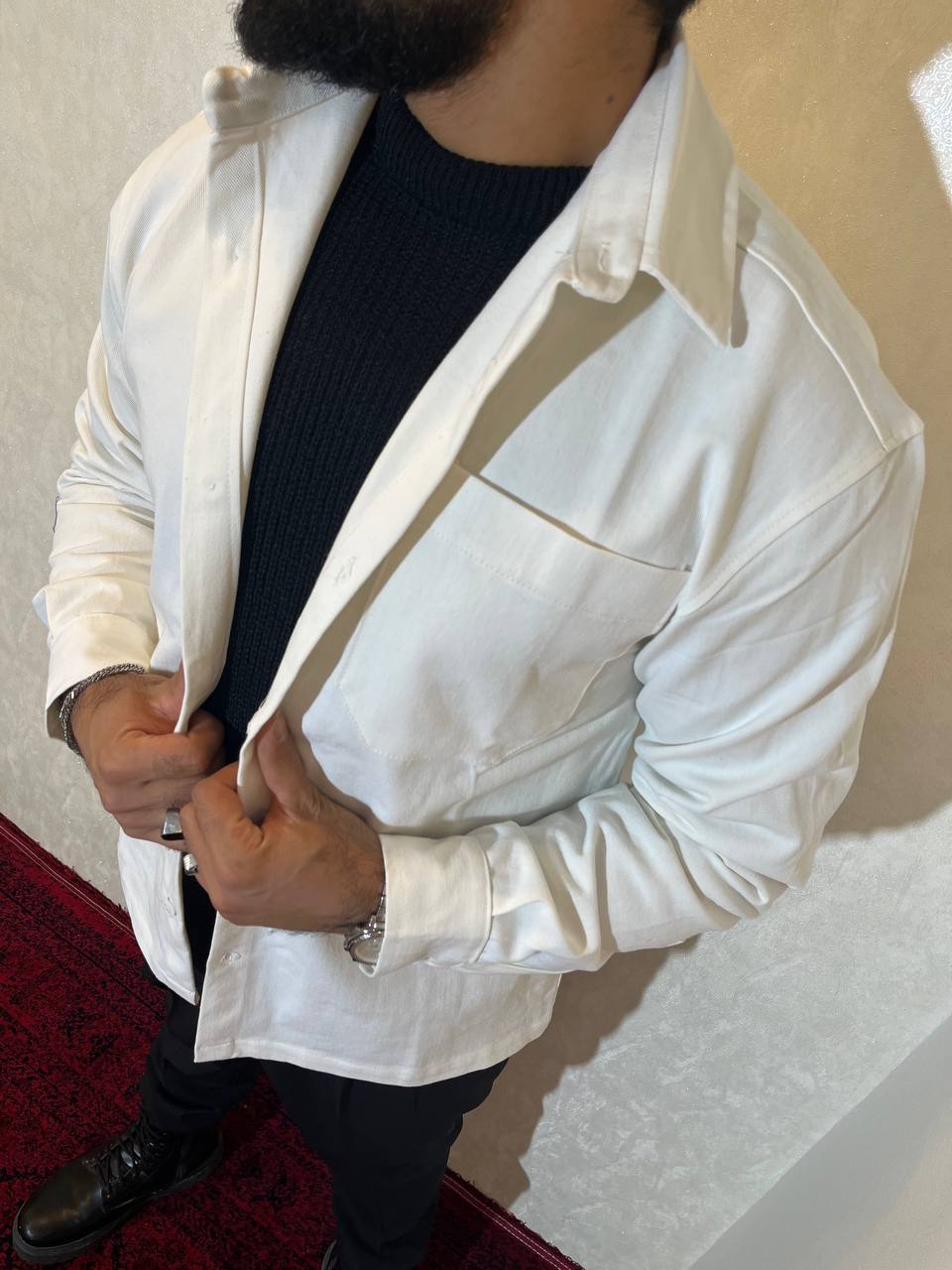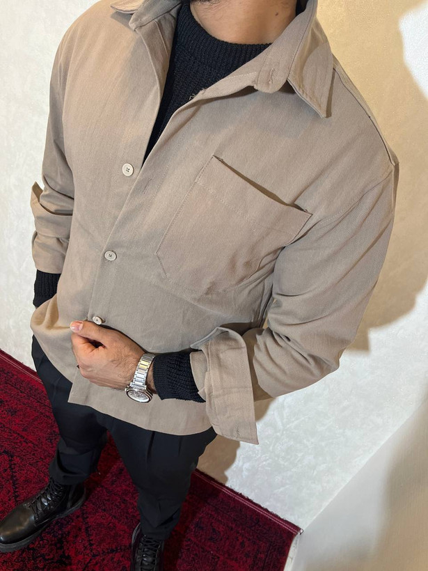 جزئیاتی مثل جیب روی سینه، دکمههای محکم و یقه خوشفرم، ظاهر این کت را جذابتر کرده است.