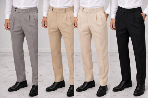 شلوار کمر ایتالیایی مردانه کرپ – استایل مامفیت در 4 رنگ مشکی و خاکی هلویی شیری